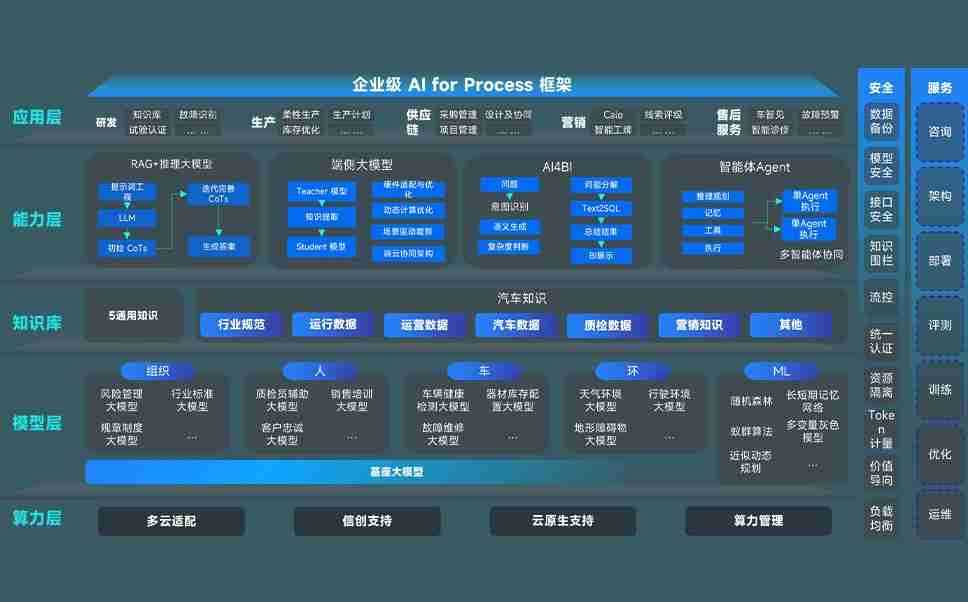 端到端的一站式AI工作空间深度融合了从企业战略规划到日常经营的全流程业务板块,,定向解决车企内部领域多、、部门多、、、链条长、、、、场景碎片化等难题,,支持车企快速构建以AI为核心的生产力写作体系,,,,实现任务执行与AI能力的无缝集成与交互